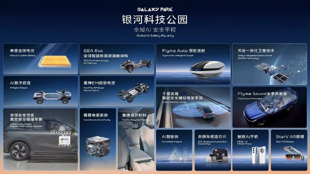 在近11年,吉利累计研发投入超2500亿元,不仅在新能源架构、三电和安全等核心技术领域取得了行业领先的成果,还在智能化领域持续探索和投入,从“大算力、大模型、大数据”,再到“天地一体”的出行生态,吉利已经全面构建了 AI 科技的新基座。随着《智能吉利2025战略》的不断落地,为打造吉利银河高价值新能源汽车提供了强大的技术支持,今年,吉利率先发布了行业首个智能汽车全域AI技术体系,并陆续将全域AI融入智驾域、动力域、底盘域,例如千里浩瀚智能安全辅助驾驶系统、AI云动力2.0、AI数字底盘等这些AI智能化的核心技术成果,已率先在吉利银河旗下产品上搭载应用。