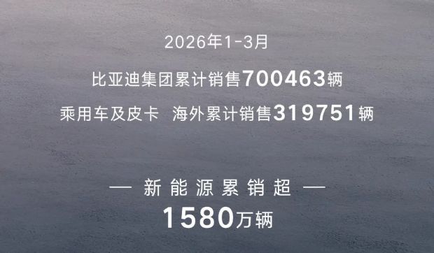 4月1日,比亚迪正式发布2026年3月及一季度销量数据。3月集团共销售汽车300222辆,重夺中国汽车厂商销量冠军。其中,乘用车295693辆,较2025年3月的377420辆同比下滑20.45%,较2026年2月的190190辆环比大涨57.9%;乘用车及皮卡海外销量达119591辆,同比劲增65.2%,成为销量增长的重要支撑。